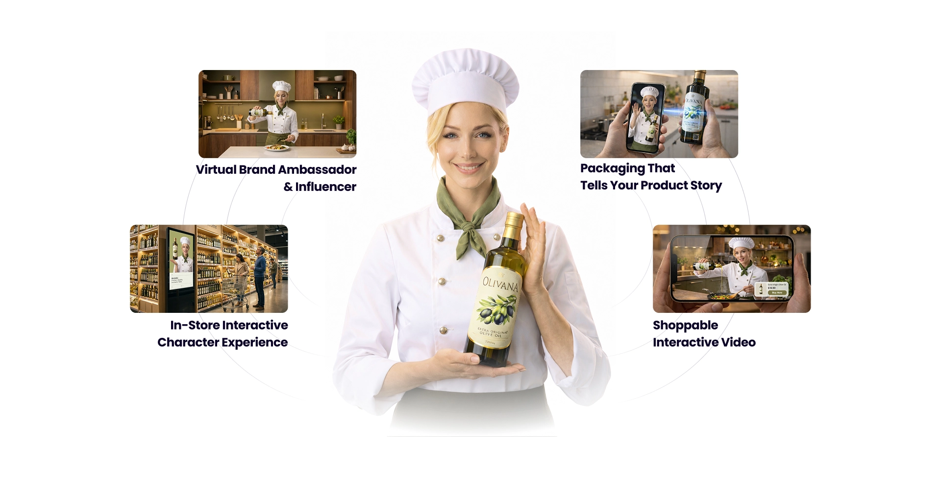 Turns every product into an interactive brand experience Your virtual character can bring your packaging to life through QR codes and digital touchpoints — sharing recipes, brand stories, origin details, and sustainability information (Digital Product Passport) in a simple, engaging way that builds trust and loyalty.