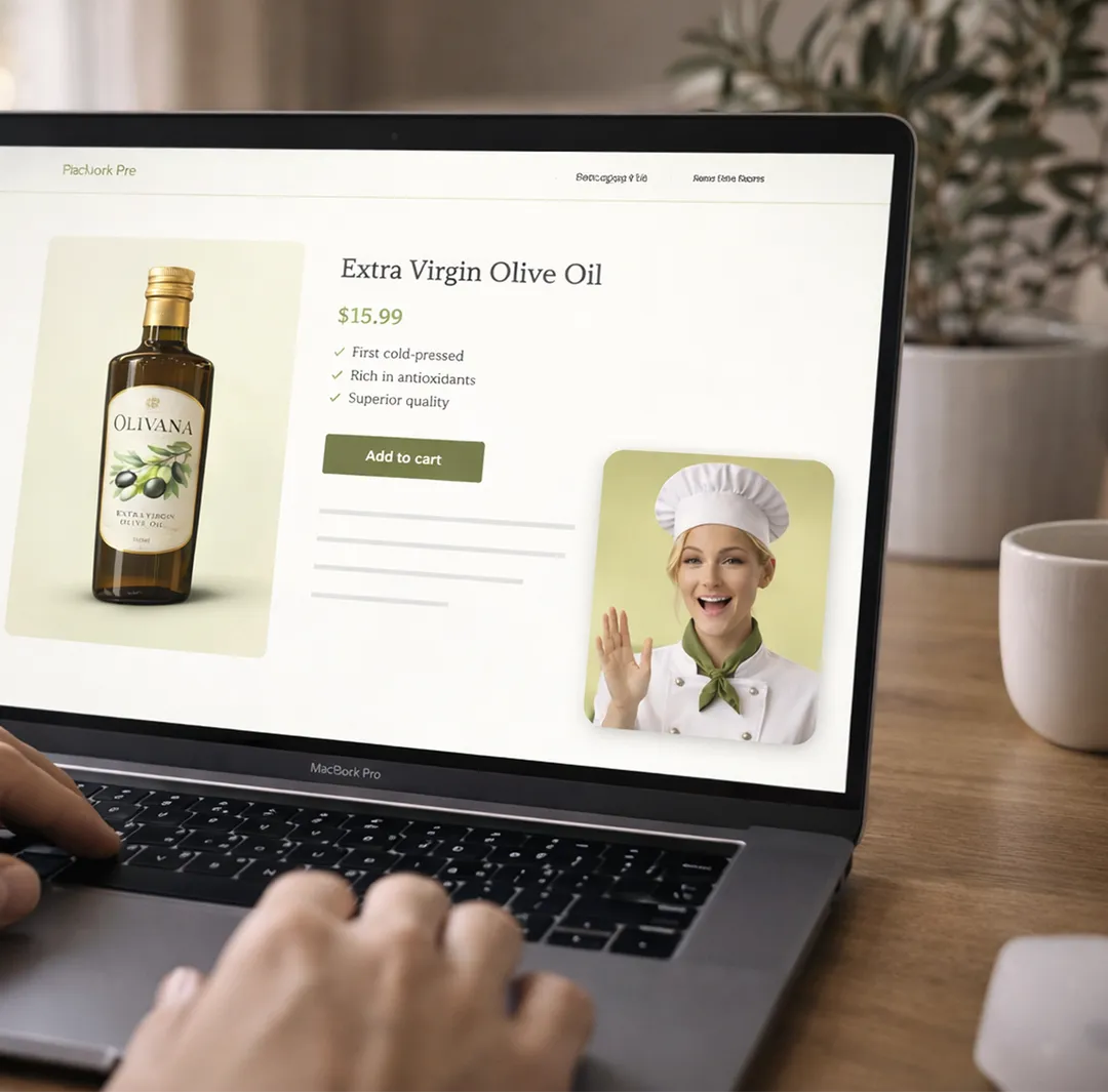 Connects content directly to buying Your character can host interactive videos where customers explore products, discover options, and purchase instantly — turning food content into a direct shopping experience.