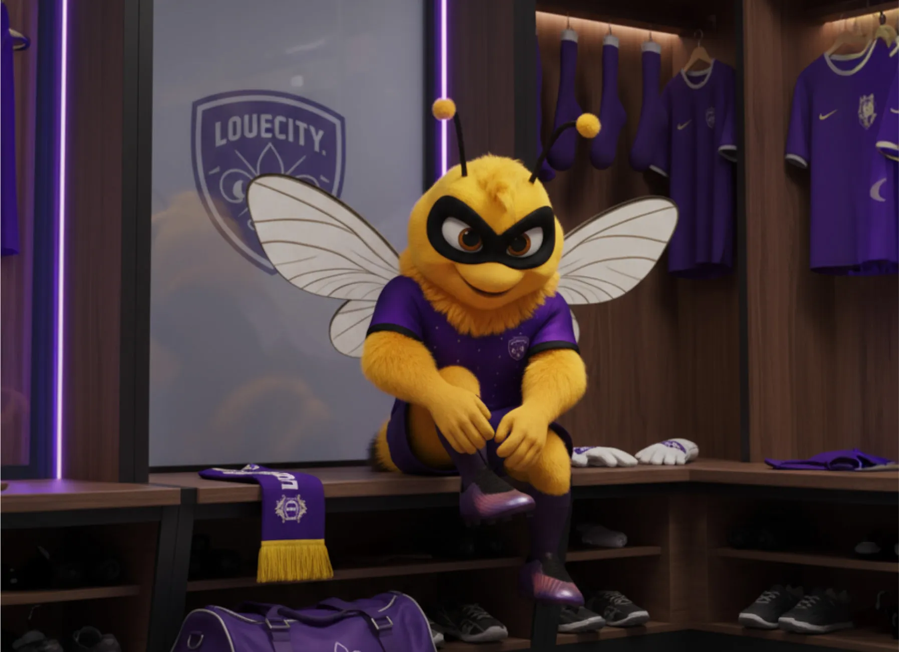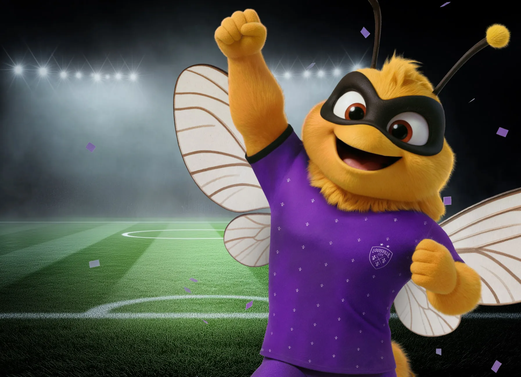 This is our Bee. Sharp, expressive, and precise when it matters. A character that balances intensity with playfulness, aligned with the Louisville City FC team.